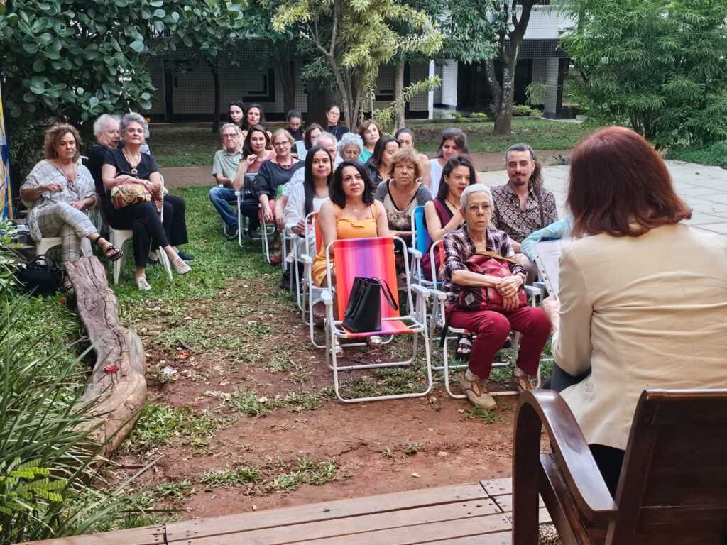 A diretora científica da SPBsb, Nize Nascimento, abriu o encontro destacando a importância da circulação do pensamento e da presença da autora em Brasília, que possui ampla formação acadêmica.